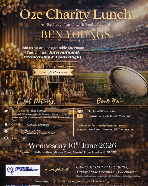 Join O2e on Wednesday 10th June for an afternoon of insights into the world of International, Premiership and Lions Rugby with Ben Youngs, one of the most influential players of his time. The event will be held at Balls Brothers, London EC3 from midday and tables of 10 are available or you can book individually. Cost is £100 per person which includes a three course lunch and a Q&A led by Sports MC Stephen Chenery. To book or for more information, contact O2e Chairman at andrew.stammers@btinternet.com